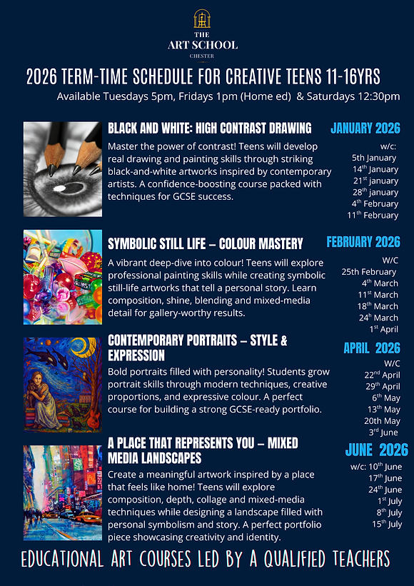 At The Art School Chester, we deliver premium fine-art education for teens who want to: